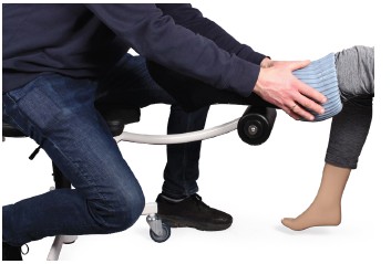 Leg Raiser EASY är ett unikt ergonomiskt hjälpmedel som förbättrar arbetsmiljön vid påsättning av kompressionsstrumpor, fot- och sårvård.