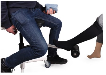 Den unika designen gör det möjligt att sätta på kompressionsstrumpor och utföra fotvård utan att lyfta benen, samtidigt som man behåller ett kort arbetsavstånd, vilket minskar vårdgivarens dagliga belastning avsevärt.